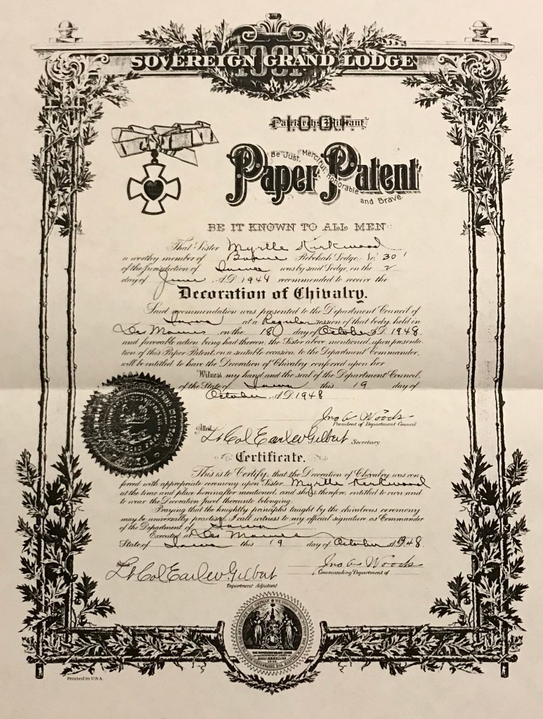 Myrtle received a Decoration of Chivalry. I tried to find out more about why it was given but could only find links to photos of a pin she may have received along with the certificate. This is from 1944.