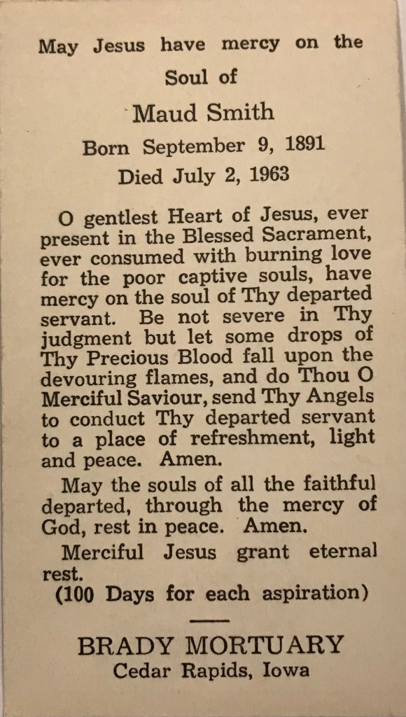 She was so much more than a grandmother. Not that being a grandmother isn’t enough but she did so many varied activities throughout her life, they help show the entire picture. Her dad had several occupations, one was working in the coal mines around Boone, Iowa. When my grandmother was in high school her father was injured in a mining accident. I don’t know anything about the accident except it injured one of his legs (as told by my mom). My grandmother quit school and began working in the mining store to help the family with money. This is more than likely where she met my grandfather although it would be quite a few years before they married. I’m guessing this might be where she began to learn nursing skills. The miners often were injured on the job and we know that she was considered a nurse with skills she learned in life.