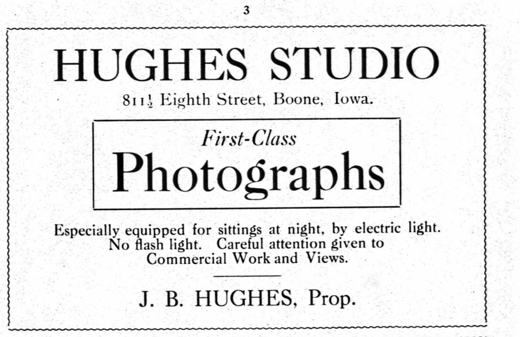 I found an advertisement for the photo studio in the same directory. It talks about the special lighting they had available so they could take pictures at night. I love the coloring of this photo and how they are all enjoying the fireplace. Or maybe it is just an illusion of a fireplace created with their special lights. I wasn’t able to find information about the photgrapher right now. I think I looked it up in the past and discovered he was only in Boone for a few years and than moved to California. I could be wrong though as I seem to have misplaced my notes.