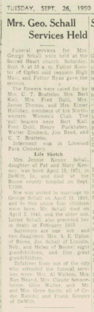Jennie (Kinney) Schall, my dad’s grandmothers sister who lived in Boone.