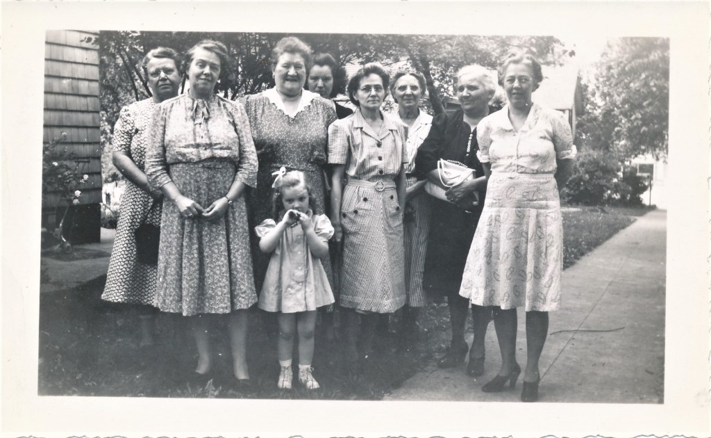 Grandma’s Mom’s Club. She is the tallest and my aunt is behind her on the right, her granddaughter is in front of her.
