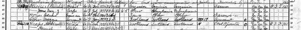 Many times I find as parents age they tend to go and live with one of their children. Janet (Ferguson) Craig is living with Nicol Kirkwood and Elizabeth (Craig) Kirkwood in 1841. Mary (Craig) Guy and Robert Guy’s daughter named Helen is living with them as well as George Kirkwood who becomes her husband. So, I need to keep researching the other siblings to find out if either Mary and/or Robert are living with one of them in 1841.