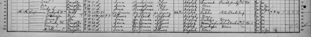 The final name on this census surprised me. His name is Robert McMillan and he is 4 years 5 months old and listed as a boarder. The name McMillan rang a bell for me. Jessie married Robert McMillan and I believe this is one of their children. This would make him a half brother of Minnie, so maybe he was there for an extended visit. He has quite a few other full siblings so this must have been a special visit for him. Maybe that is why he is listed as a boarder, he didn’t always live with Walter and Marion.