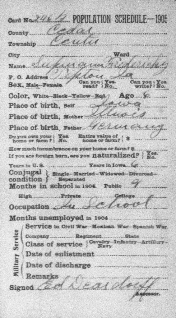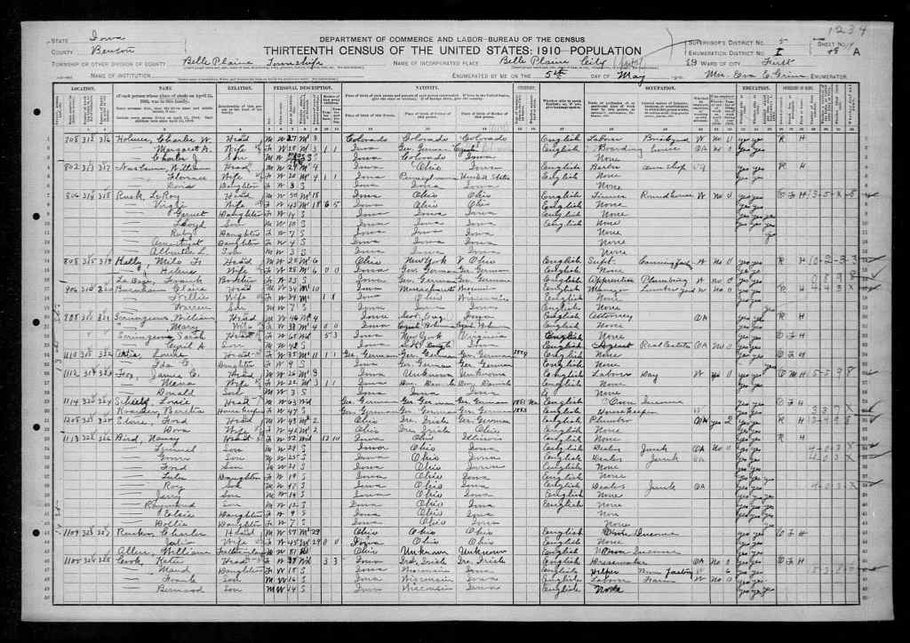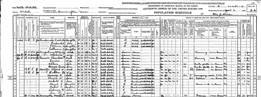 In the 1940 Census Hazel was 14 years old, not attending school, working as household help on a farm. Her family recently had to move because they were hit by the recession and lost their farm. Her dad was having trouble finding work but did get some work on a farm, one of her older brothers went to work for the CCC, and another brother was a farm laborer. None of them were able to work many hours. Hazel worked 20 full time weeks in 1939 if the census taker entered the information correctly. The minimum wage in 1940 was $0.30 an hour. Column 32 is supposed to be the amount of money earned between January 1, 1939 and December 31, 1939. According to this she made $20 for 20 weeks of full time work.