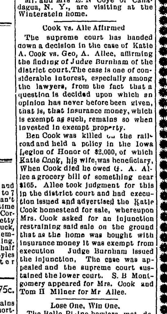 The next piece I found is about Hazel bowling. This is my one and only story about her having fun and enjoying life. She was playing in the championship game. Here is the top of the article.