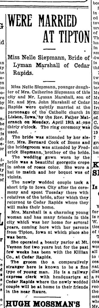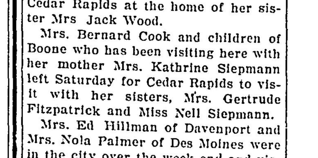This week I chose to write about my husband’s aunt Hazel. She is not the person I have the most information about her social life. In fact I only have one piece of information about her socially. Finding this one story made me feel better knowing that her life had improved and she was able to have a little fun.